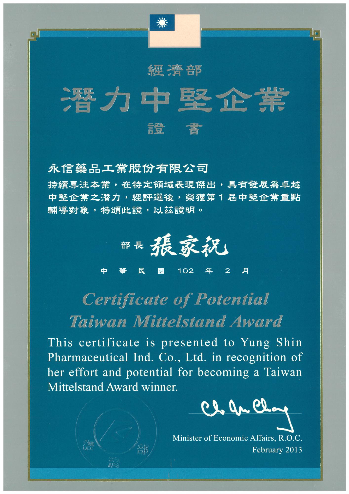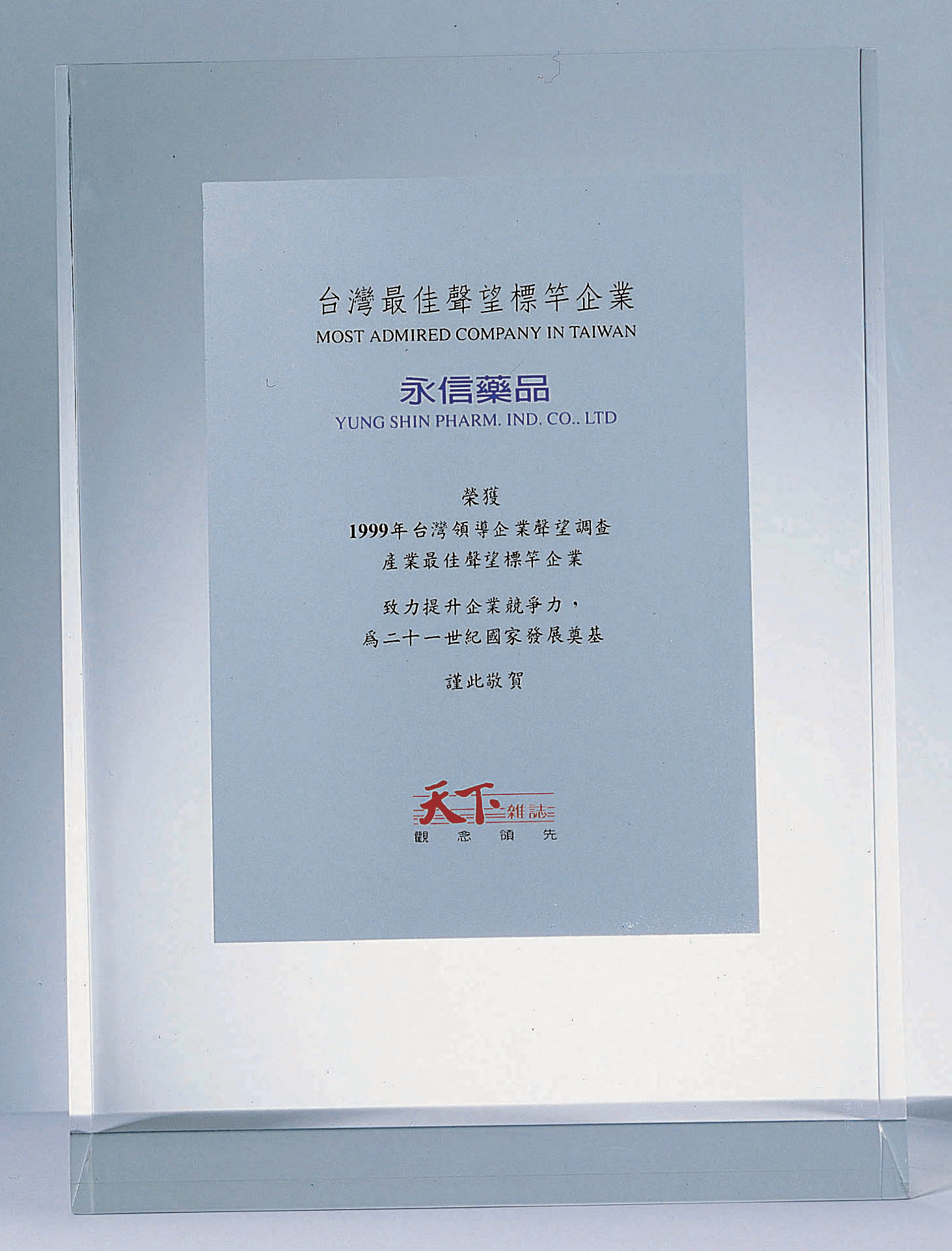 - In August Yungshin Pharm Ind. Co. Ltd. was awarded Excellence in Corporate Social Responsibility in Little Giant Category by CommonWealth Magazine.