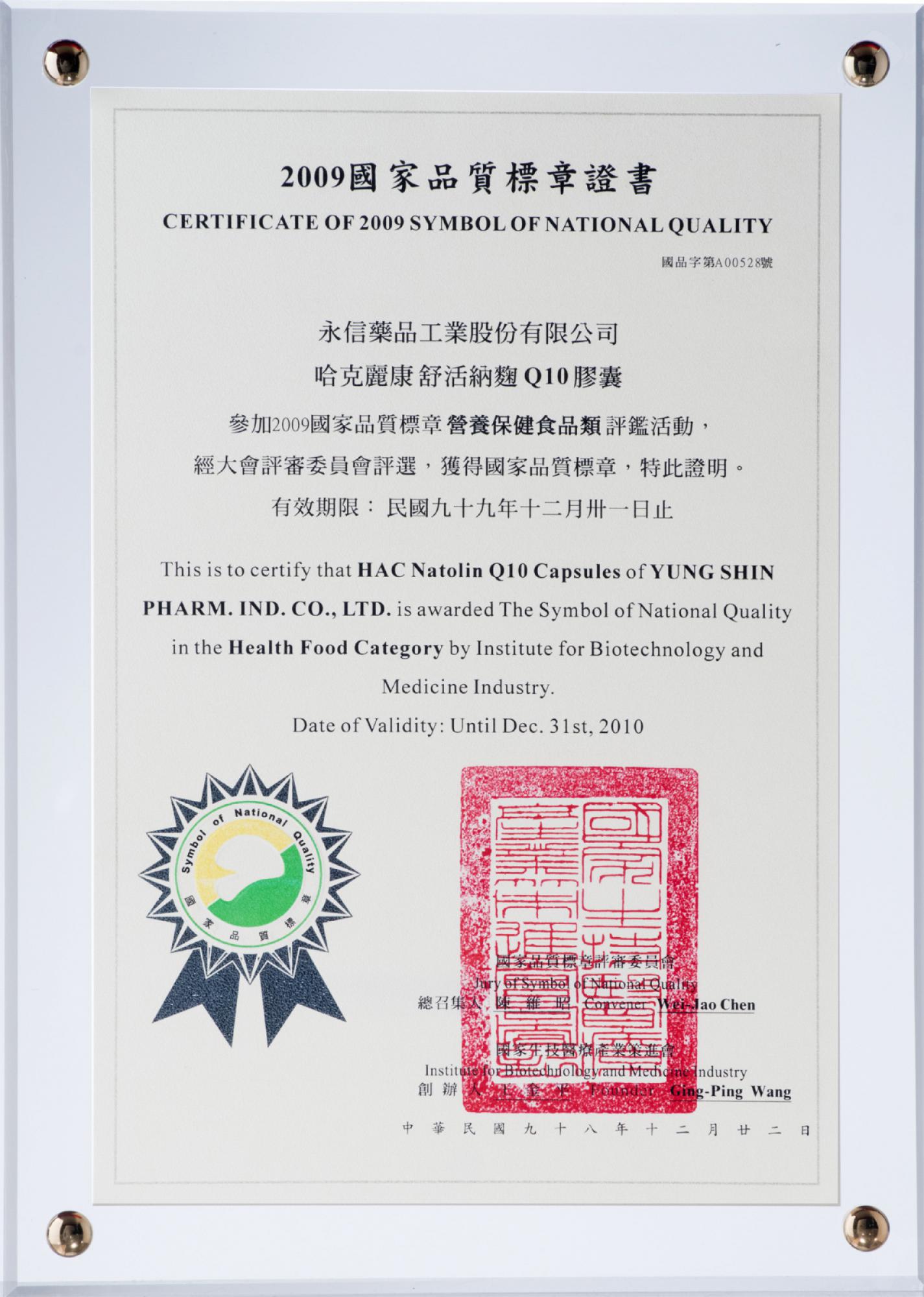 - Yung Shin HAC Ubiquinol Q10 Soft Capsules won the Gold Award at the 2022 Monde Selection World Quality Awards.