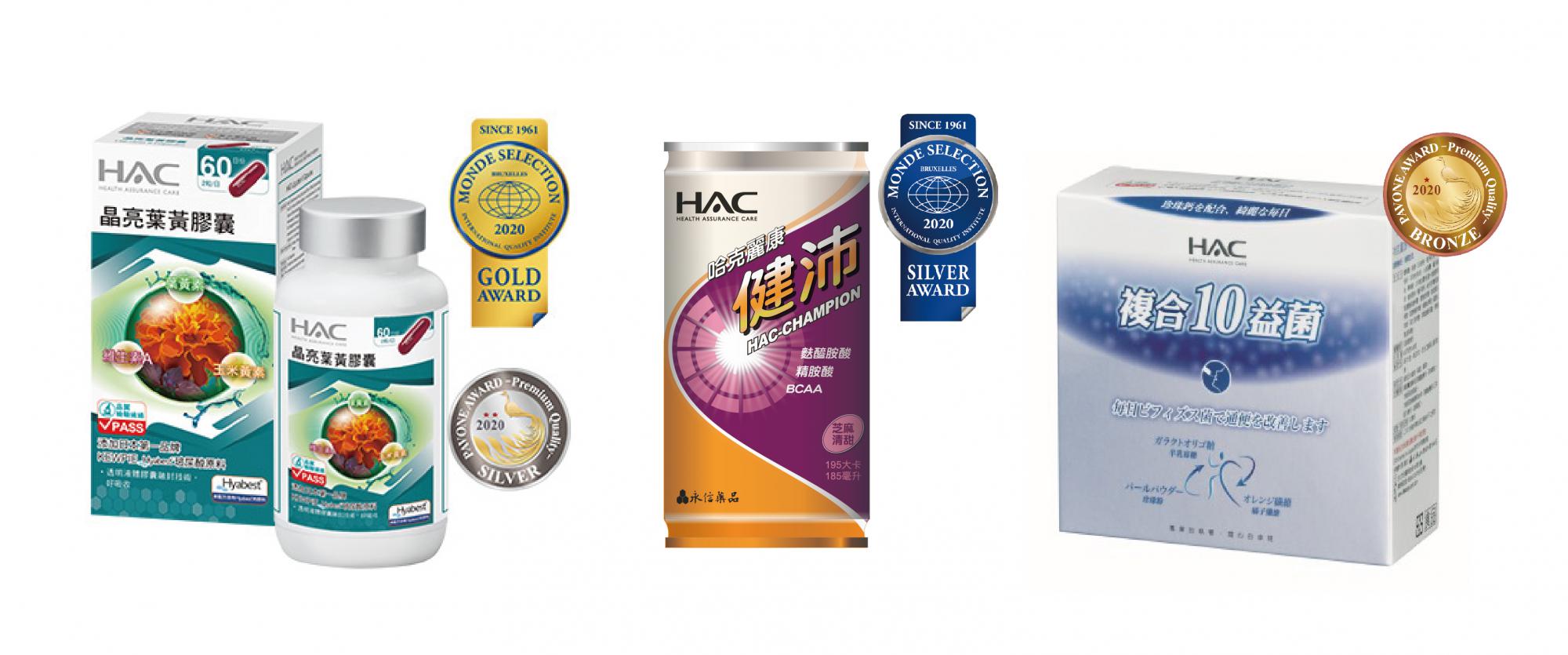 - HAC Jingliang Lutein Capsules (upgraded formula) won the Gold Award at the 2020 Monde Selection World Quality Awards.