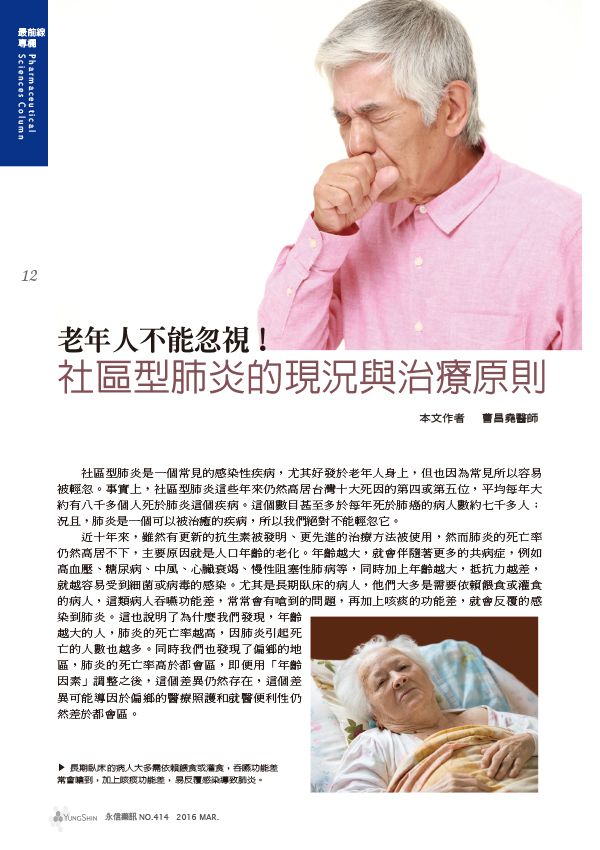老年人不能忽視~社區型肺炎的現況與治療原則