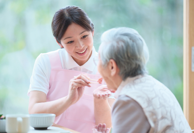 永信基金會於2001 年成立松柏園老人養護中心,在松柏園內幾乎見不到攪泥餐,取而代之的是顏色豐富、外型討喜的「介護食」。介護食的製備過程為中央廚房將食材煮熟、打碎後,加入水和「食固益」,並使用模具塑型,再搭配機構