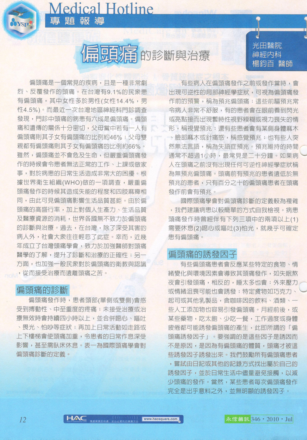 偏頭痛的診斷與治療